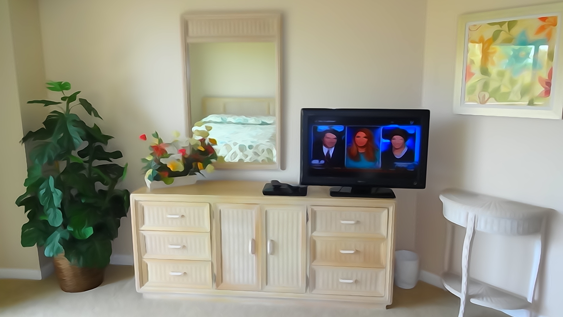 View of Master Bedroom from Sliding Glass Door 46" Sony TV = DVD/BlueRay Connects to Netflix (your account) |